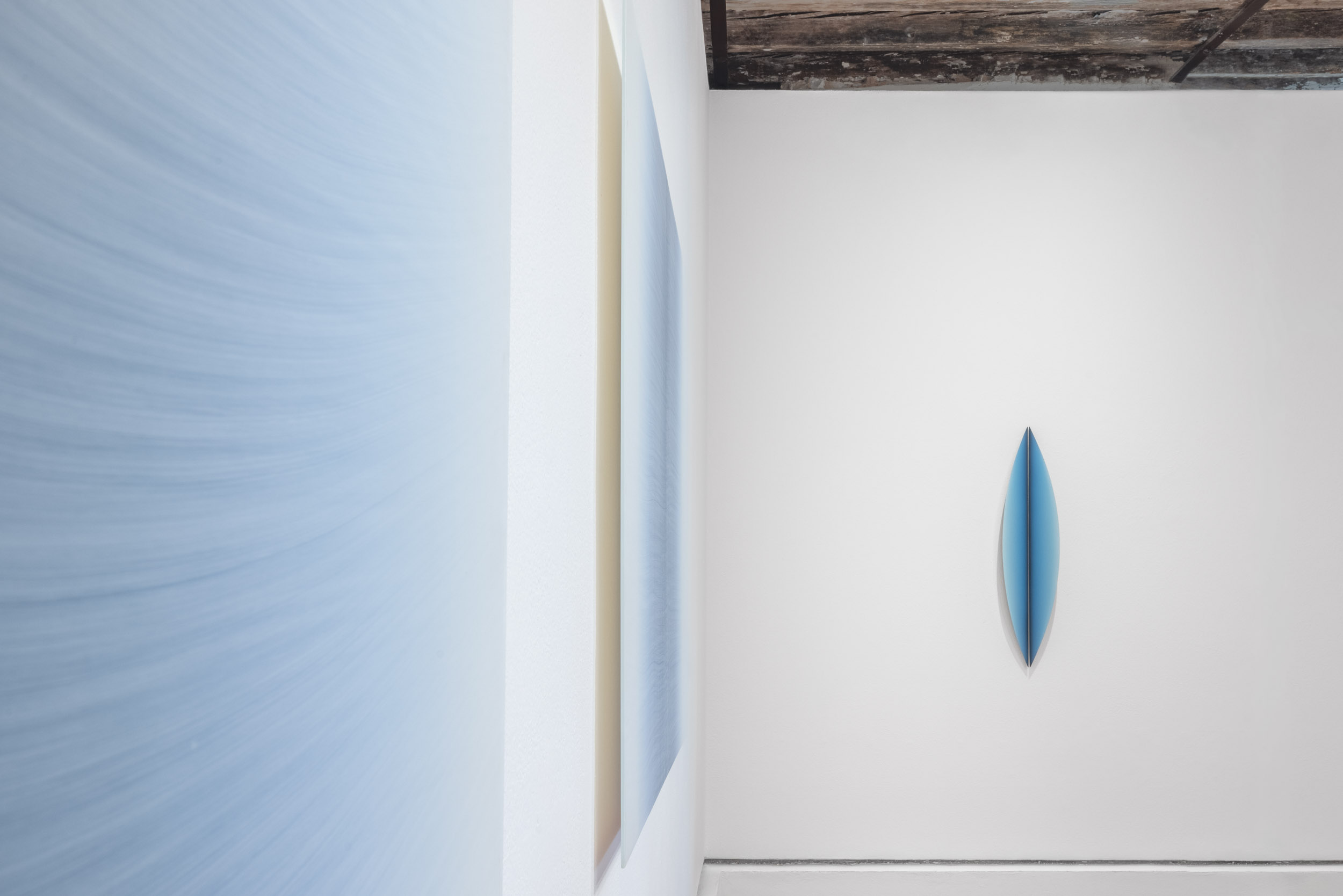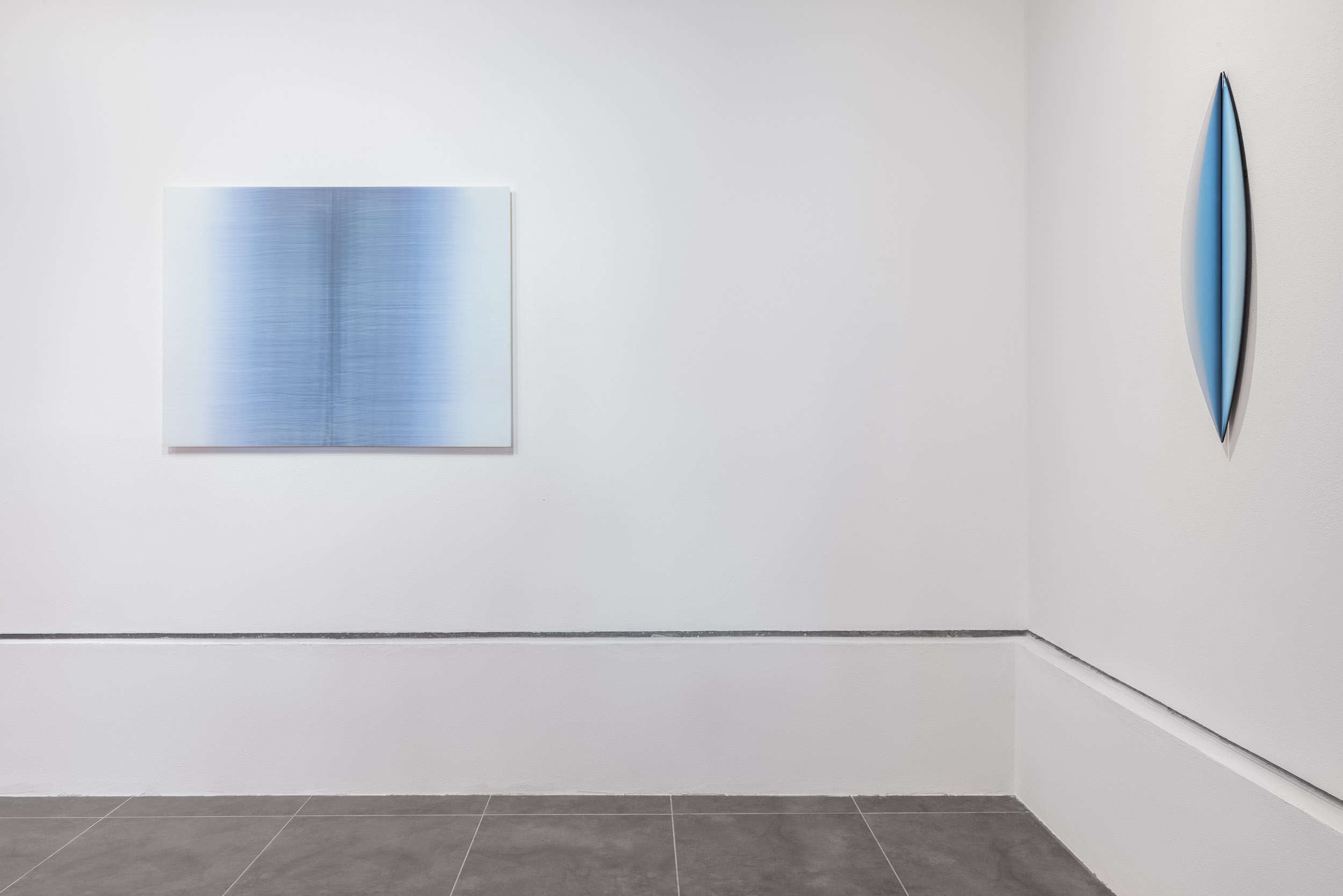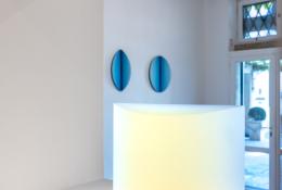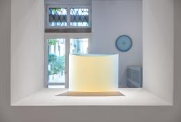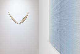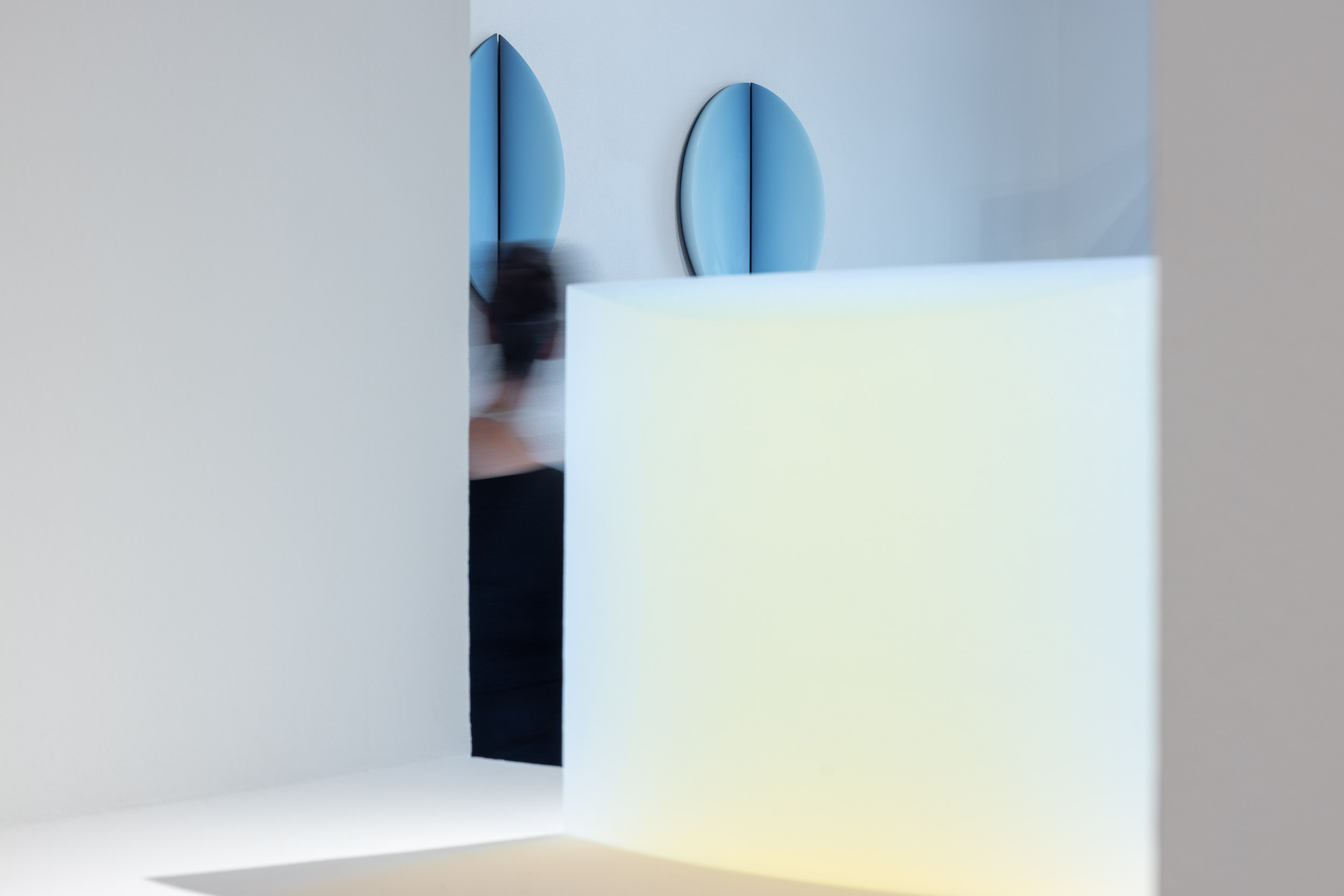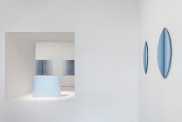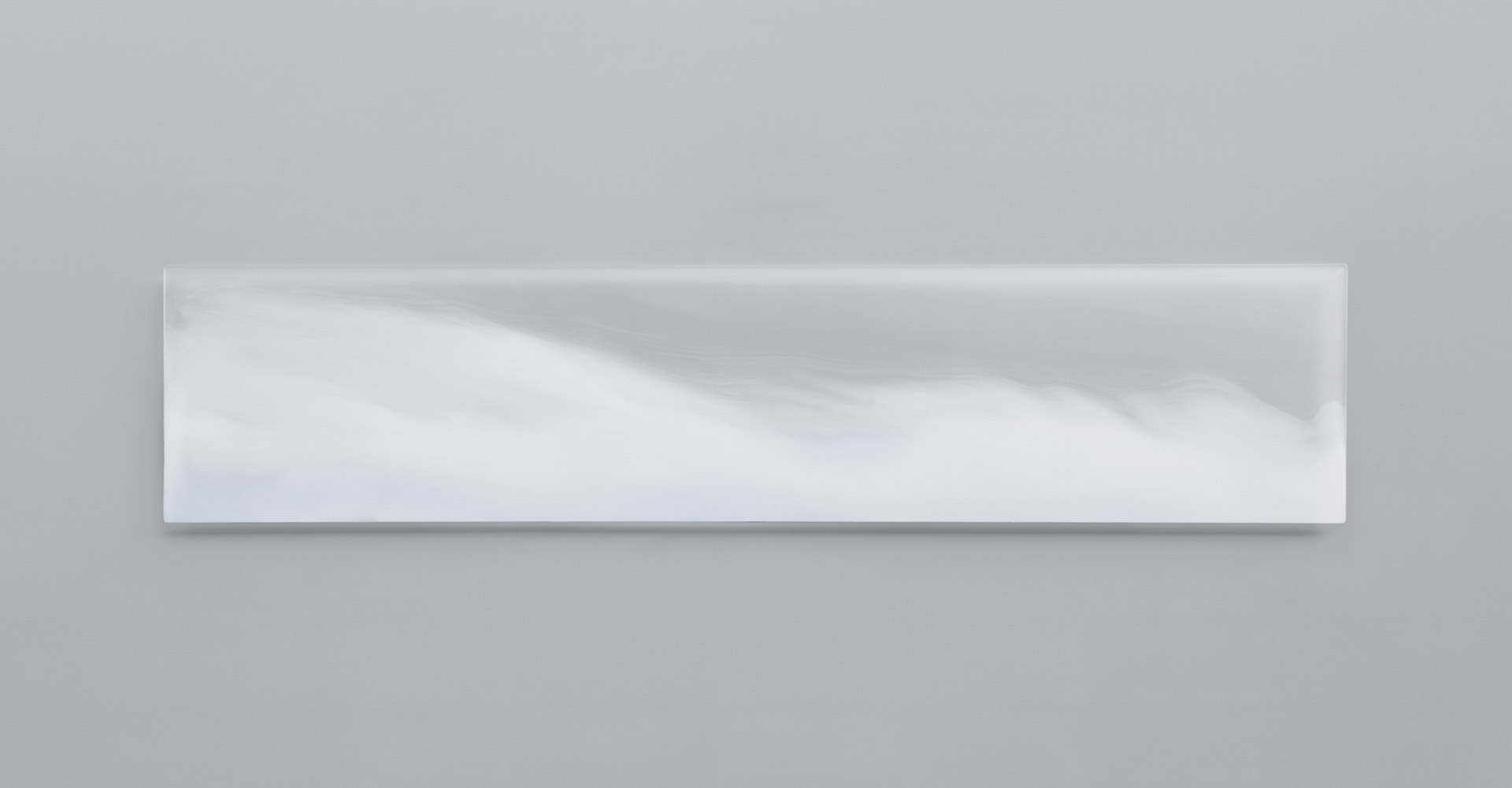 Building on the capacity of glass to both hold and reflect light, Loughlin’s characteristically minimalist glass works contain