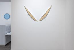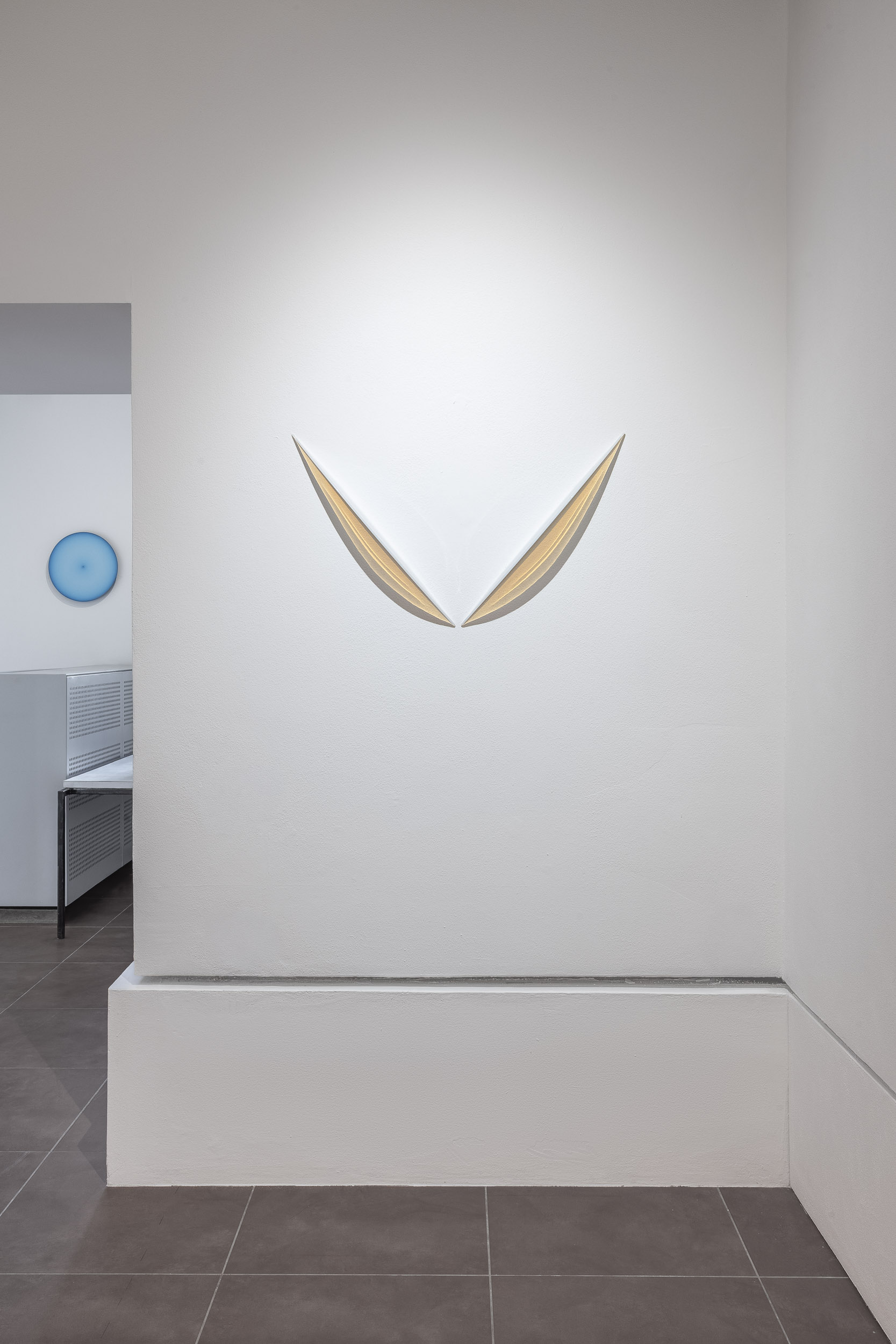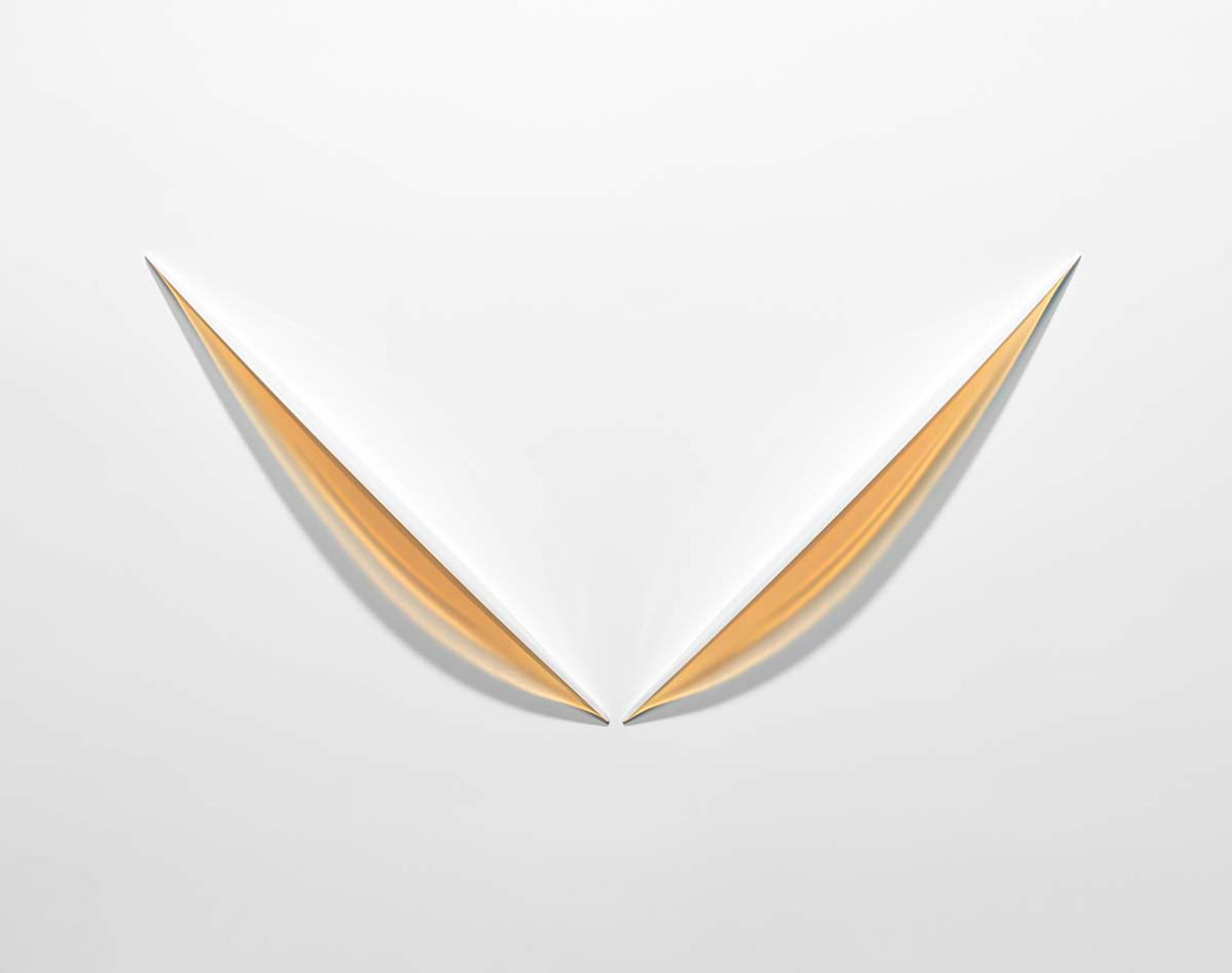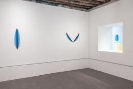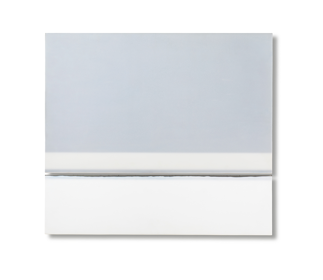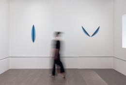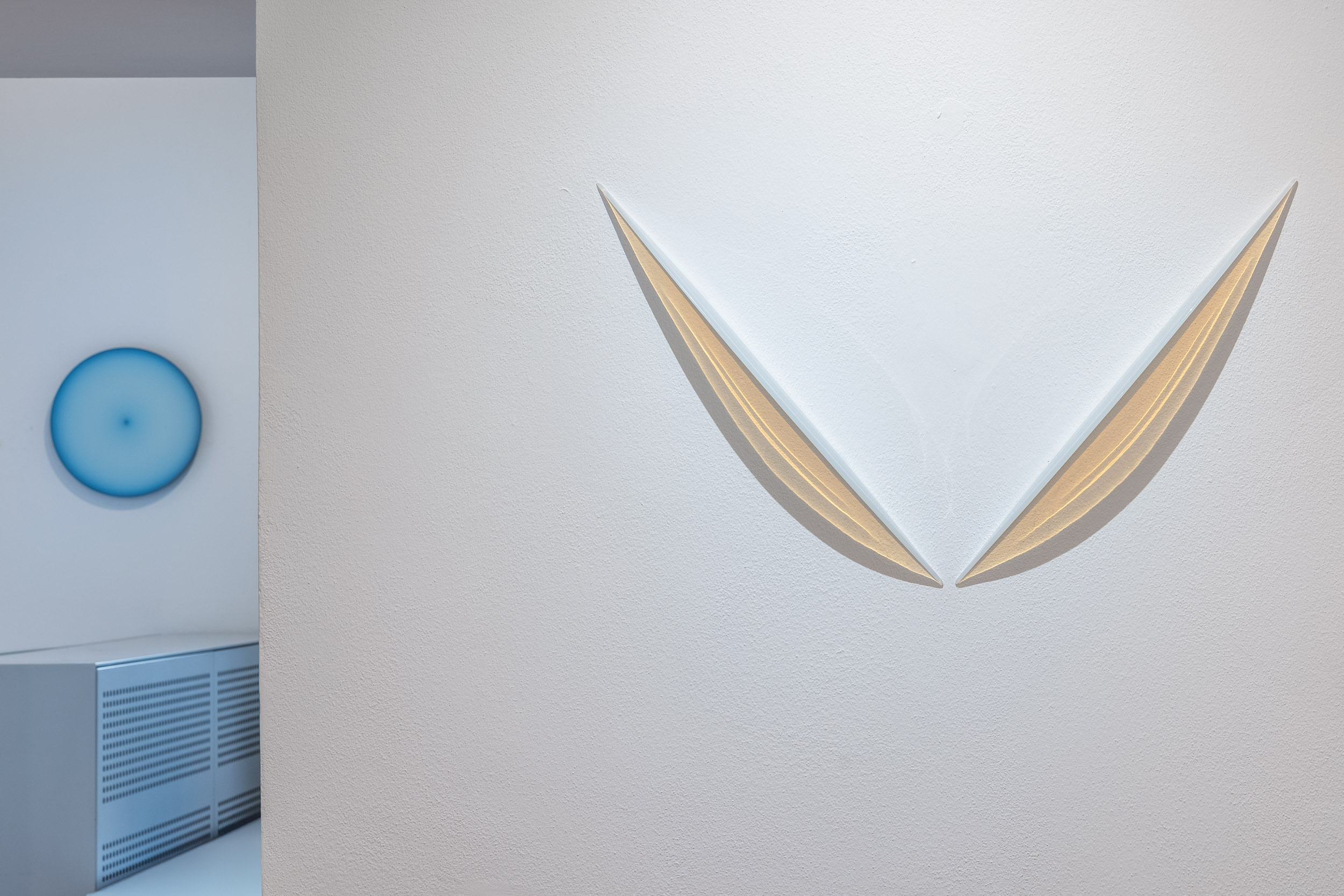 Building on the capacity of glass to both hold and reflect light, Loughlin’s characteristically minimalist glass works contain