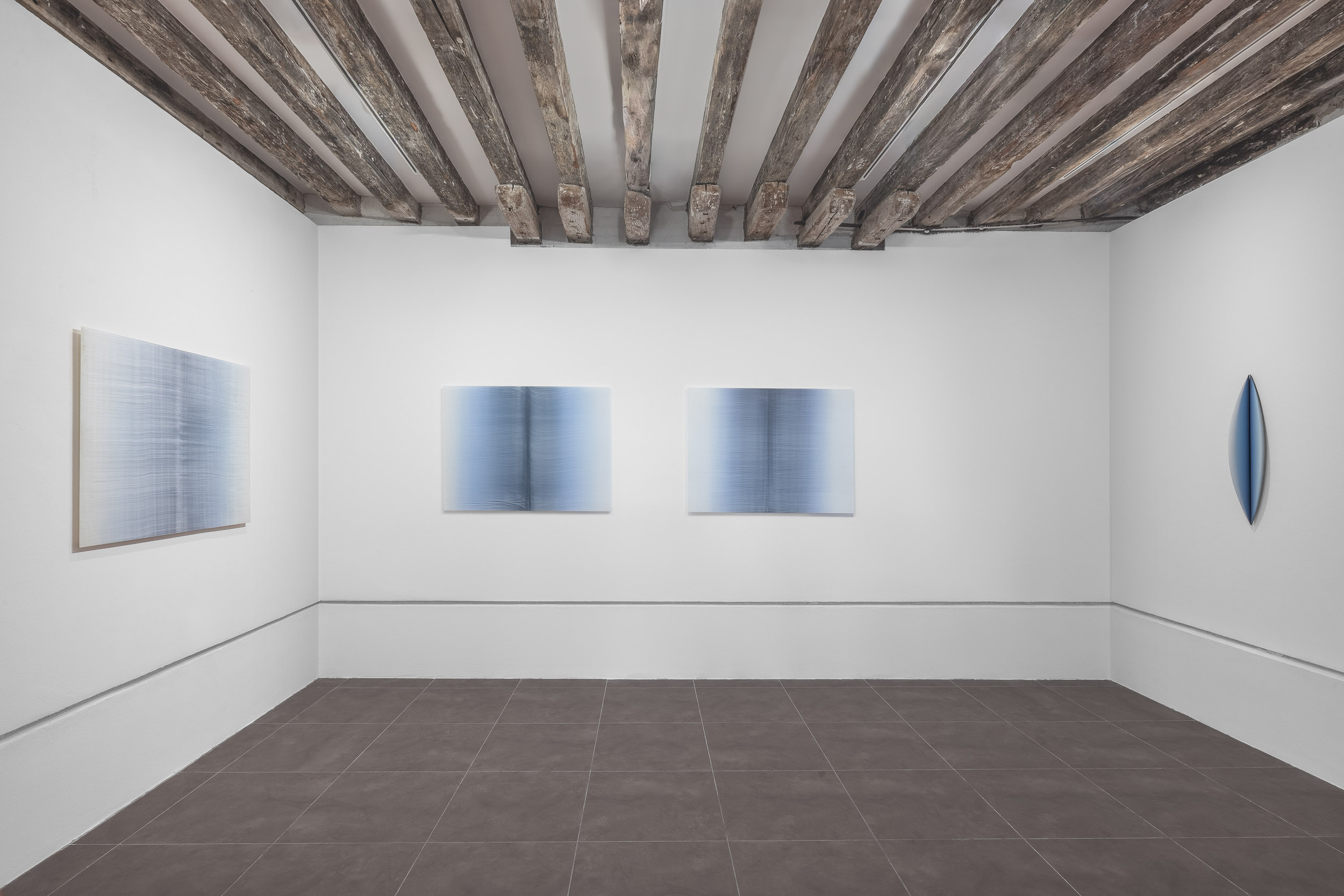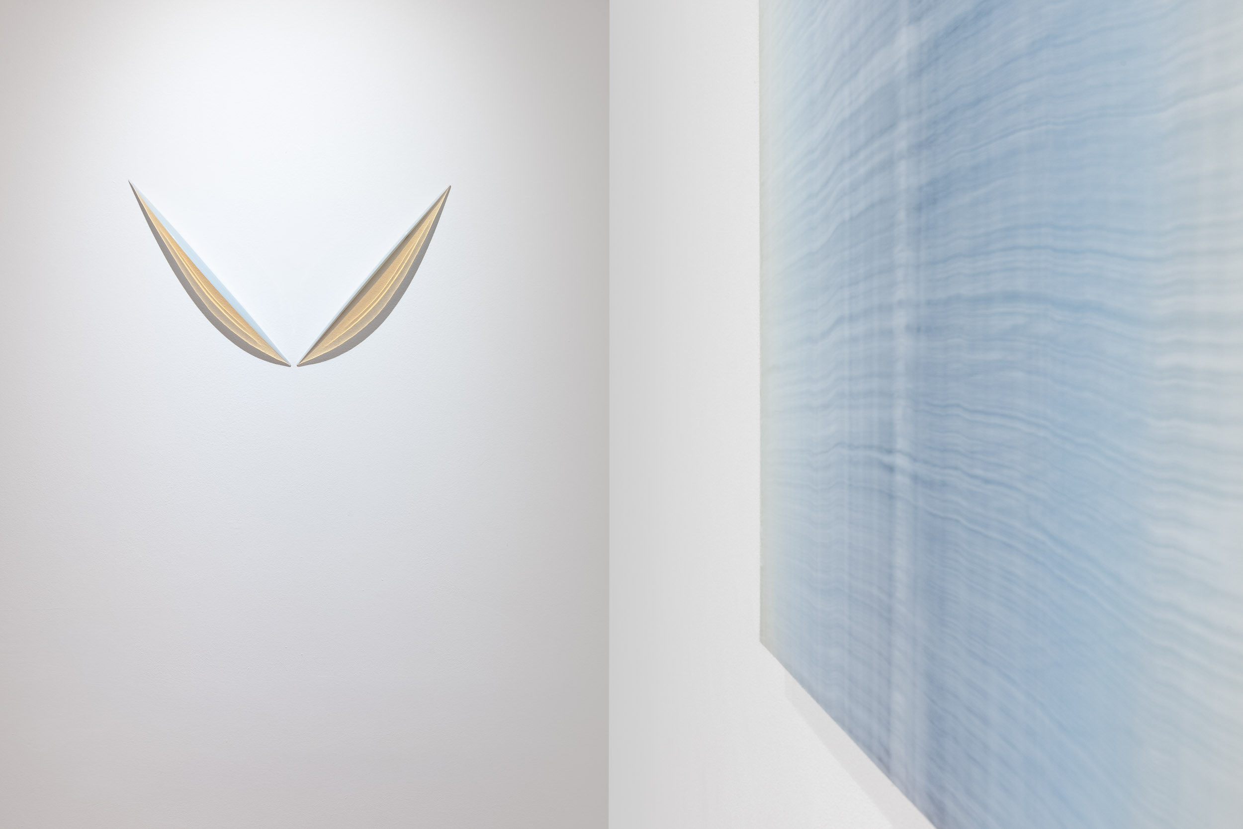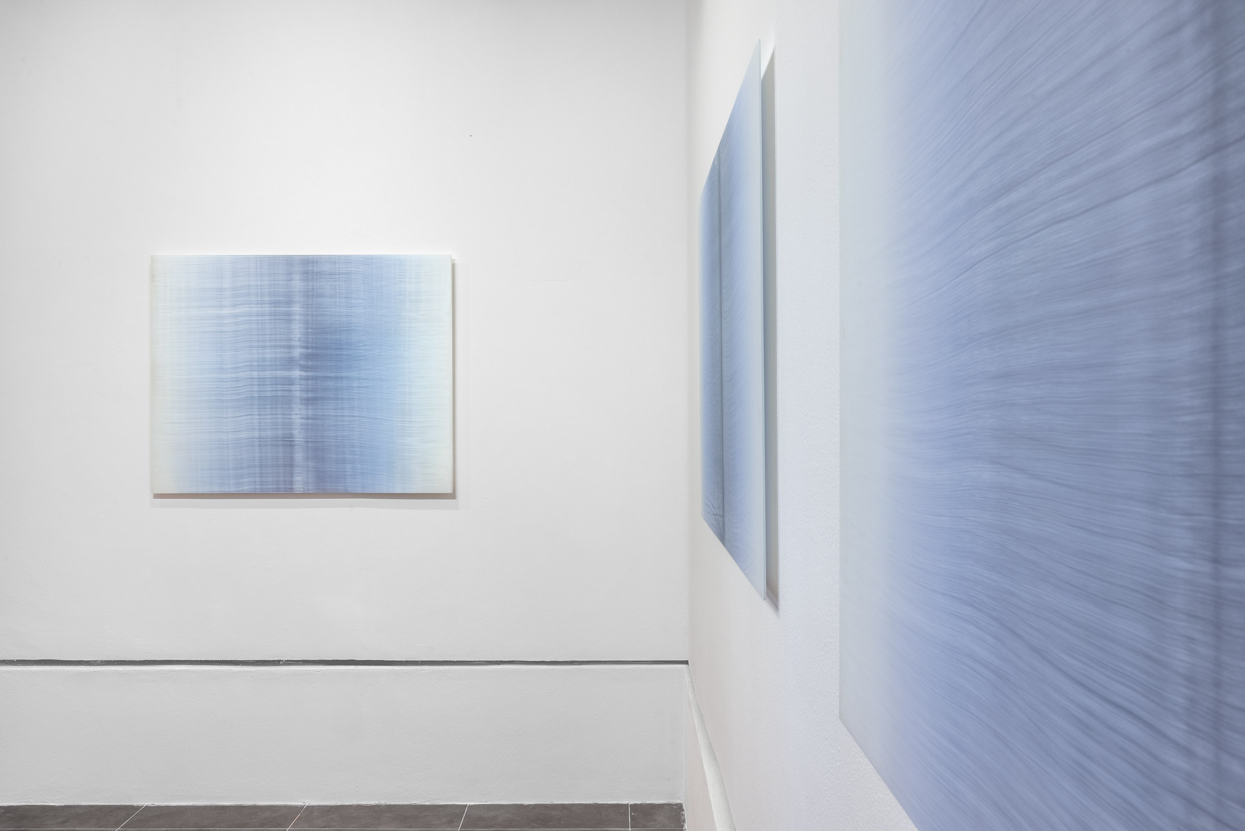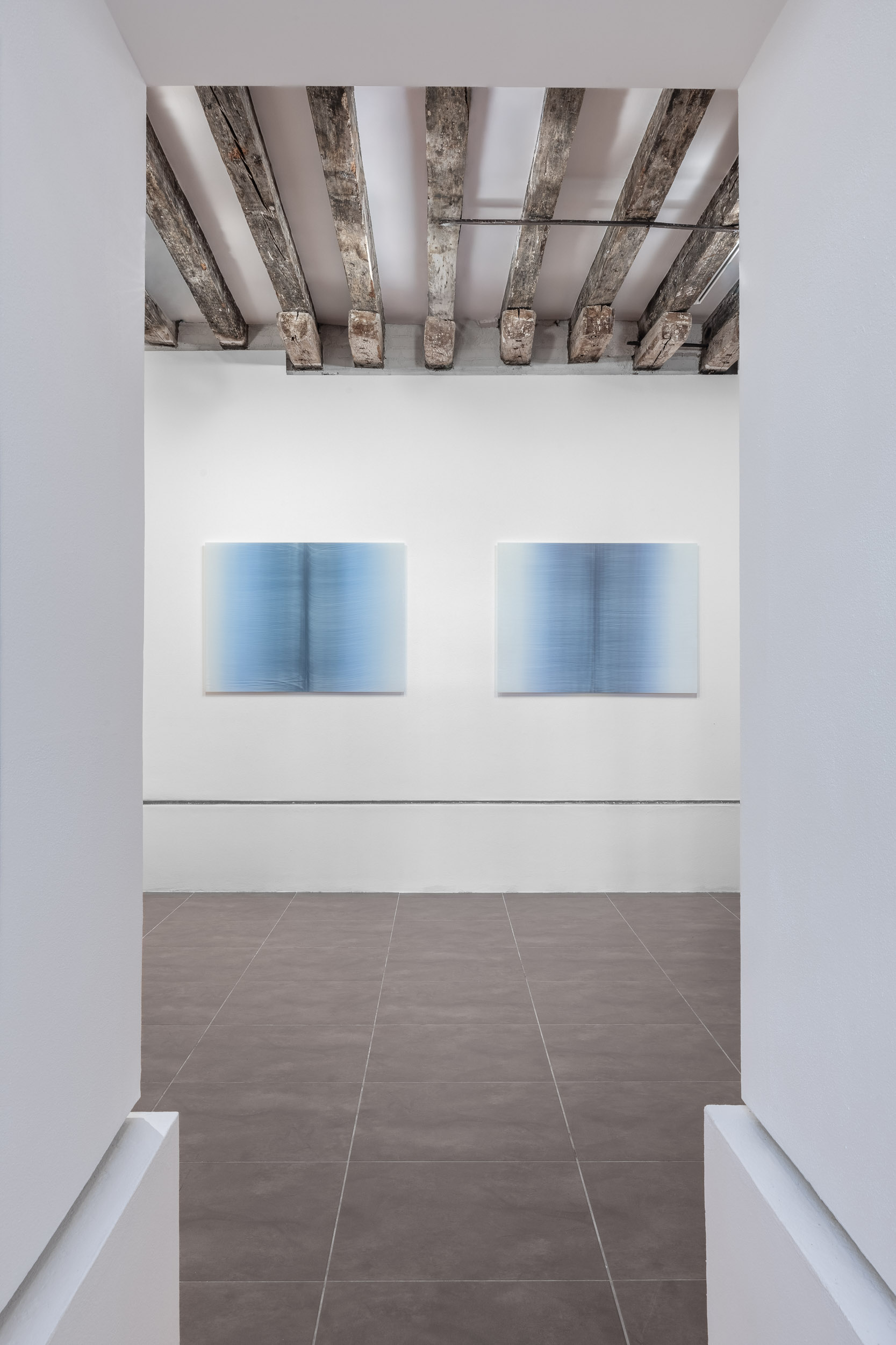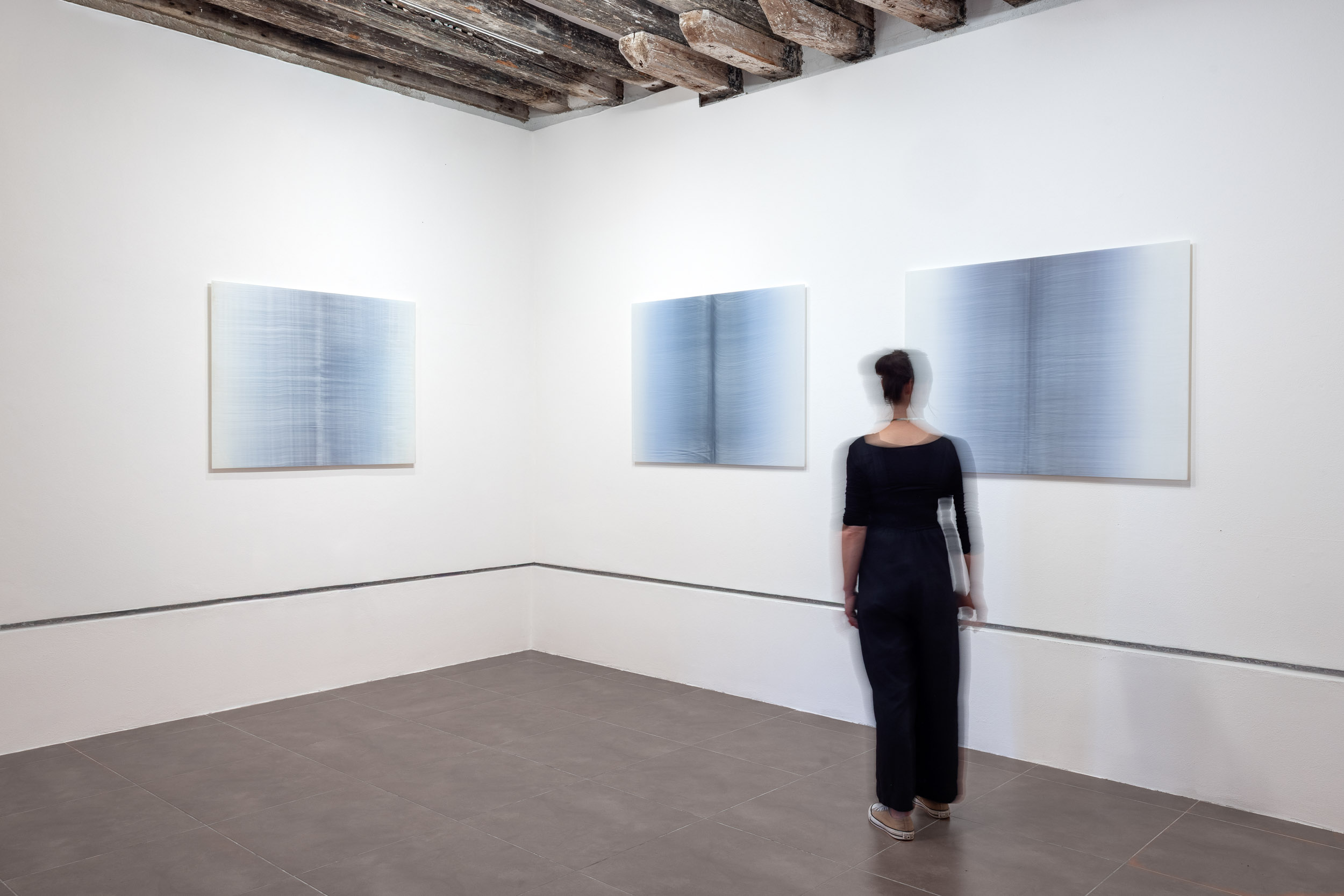 For this exhibition, I will present the series ‘resonance’ and ‘into the fold.’ These works are made with water and glass powder. They are almost like weavings of water, like a veil in which light and space resonate from within. They represent the fabric that binds us to our environment—a relationship in constant evolution that deepens over time, until we realize we are one and the same.”