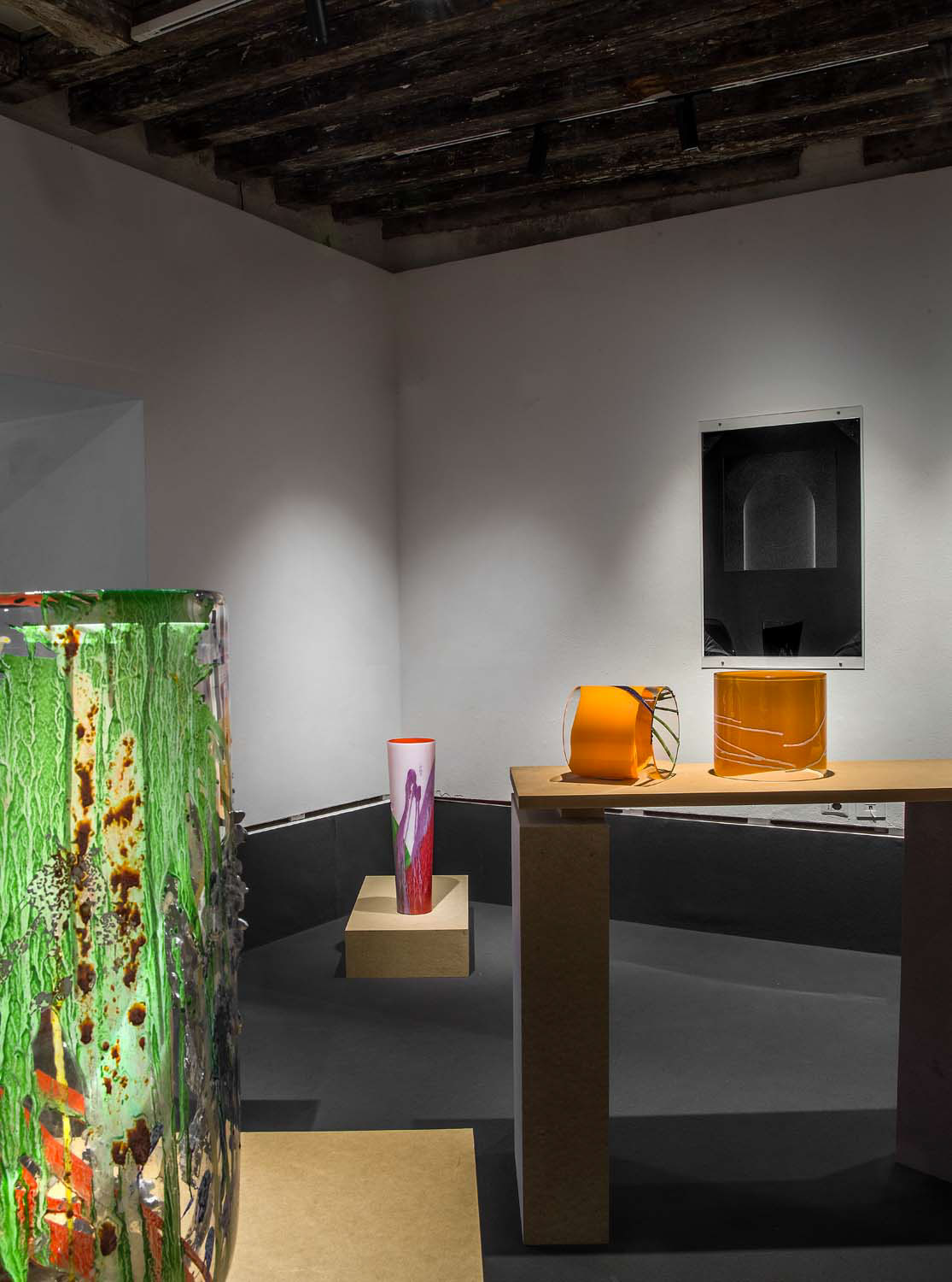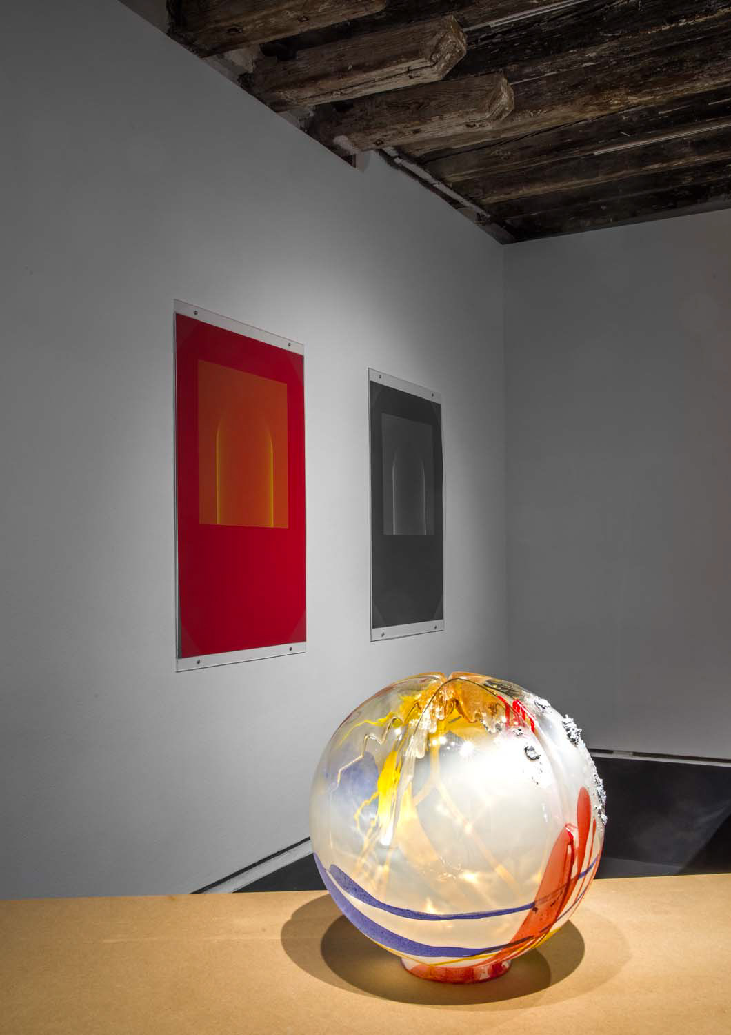 The Murano glass objects here extend Kopecký’s early 1960s experiments improvising with paint and etching on glass sheets, his 1970s assembled paintings that incorporate industrial and found materials, and his 1990s performative installations generated in the theatre of the glass foundry. This exhibition is a testament to the vitality, spirit, and dedication of Vladimír Kopecký, who has been experimenting with materials, form, scale, and colour throughout his art life.