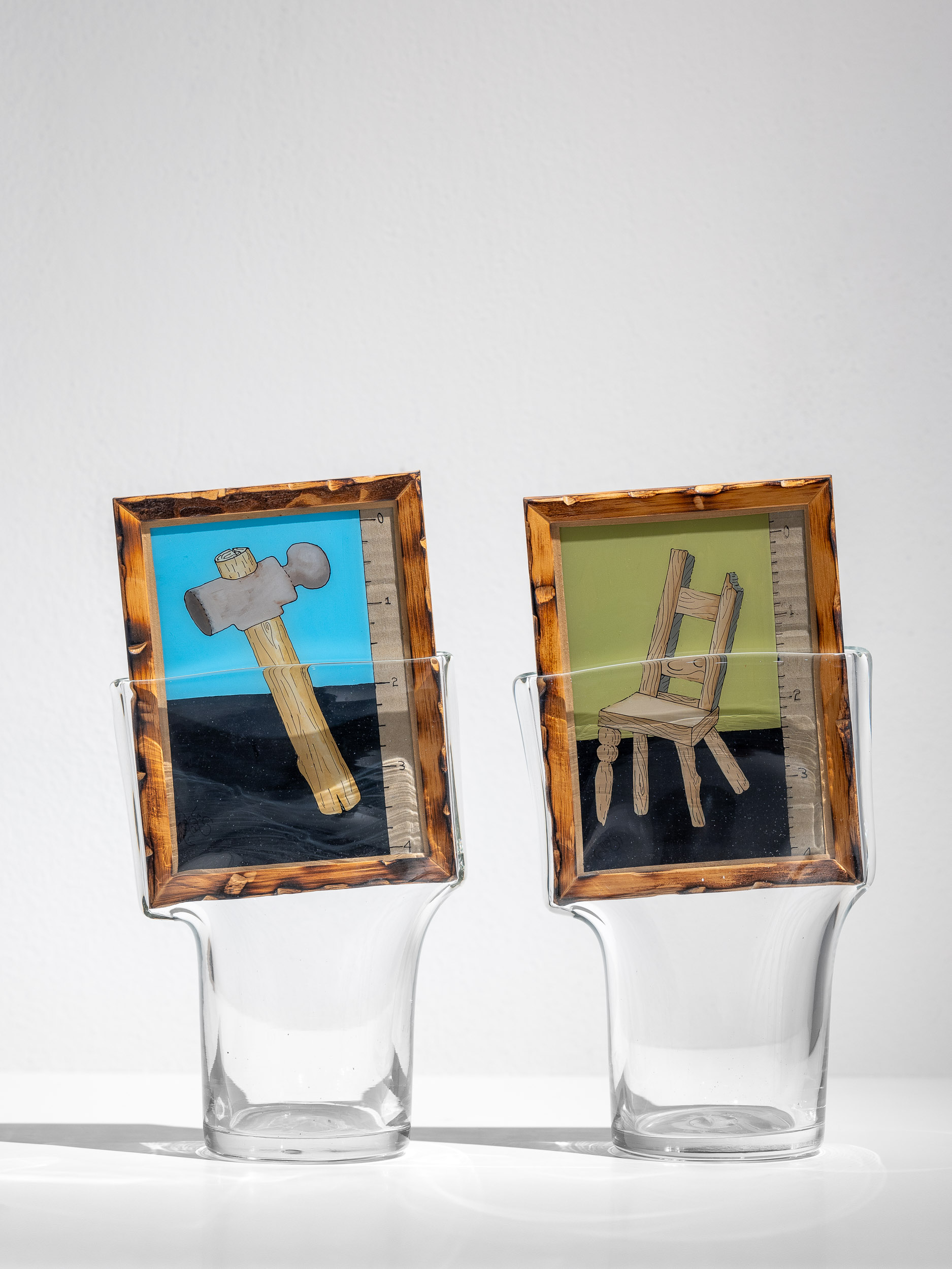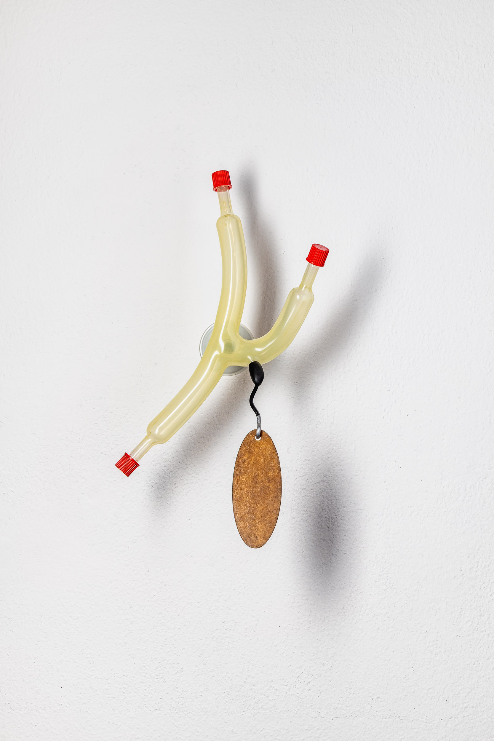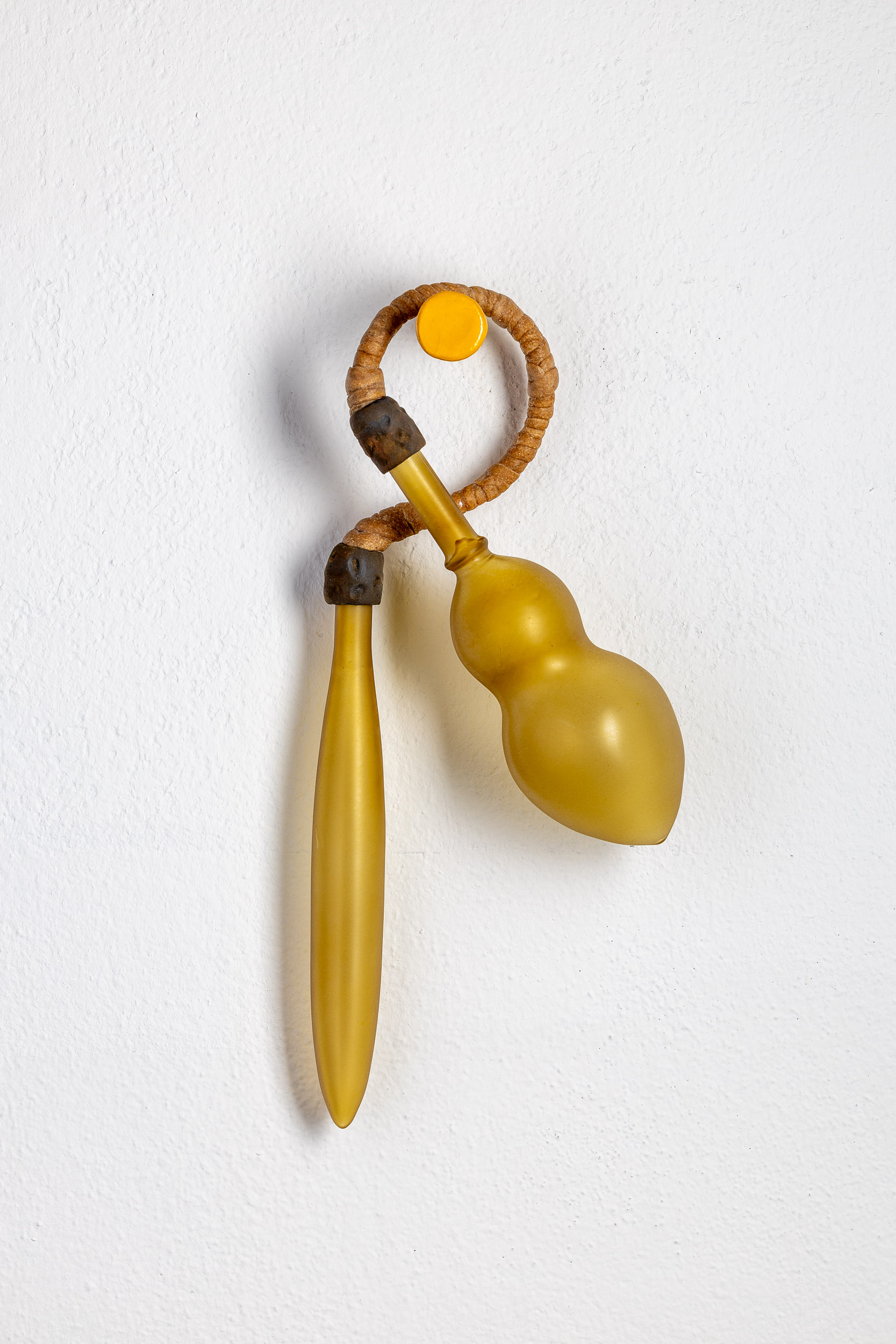I am particularly fond of his animals, especially those strange rabbits which periodically appear and disappear in his work. They are certainly, with their strange expressions, creatures from another world, a “Richard world”. I am the proud owner of a piece by Richard, one that gives me a great deal of pleasure to look at. A long-blown tube, it resembles a thermometer, but the temperature gauges are fantastic images. A magnifying glass attached to the piece urges one to pay precise attention, but just what is it we are measuring?