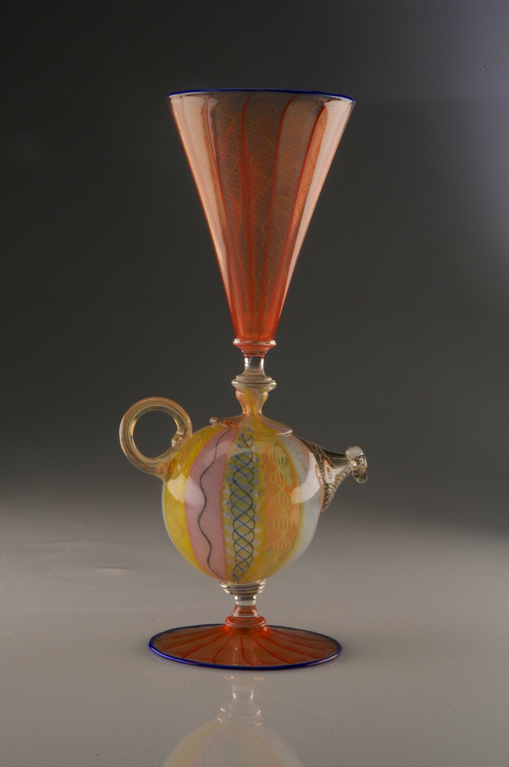 Coming from the San Francisco Bay Funk Art Movement and trained in Berkeley, USA during the 1960’s, Richard Marquis travelled to Italy thanks a Fulbright Grant and learned the techniques of filigrana and murrina at Venini in Murano in 1968, then returned to the USA where he built his own furnace, becoming one of the leading figures in the development of the American Studio Glass Movement in USA.