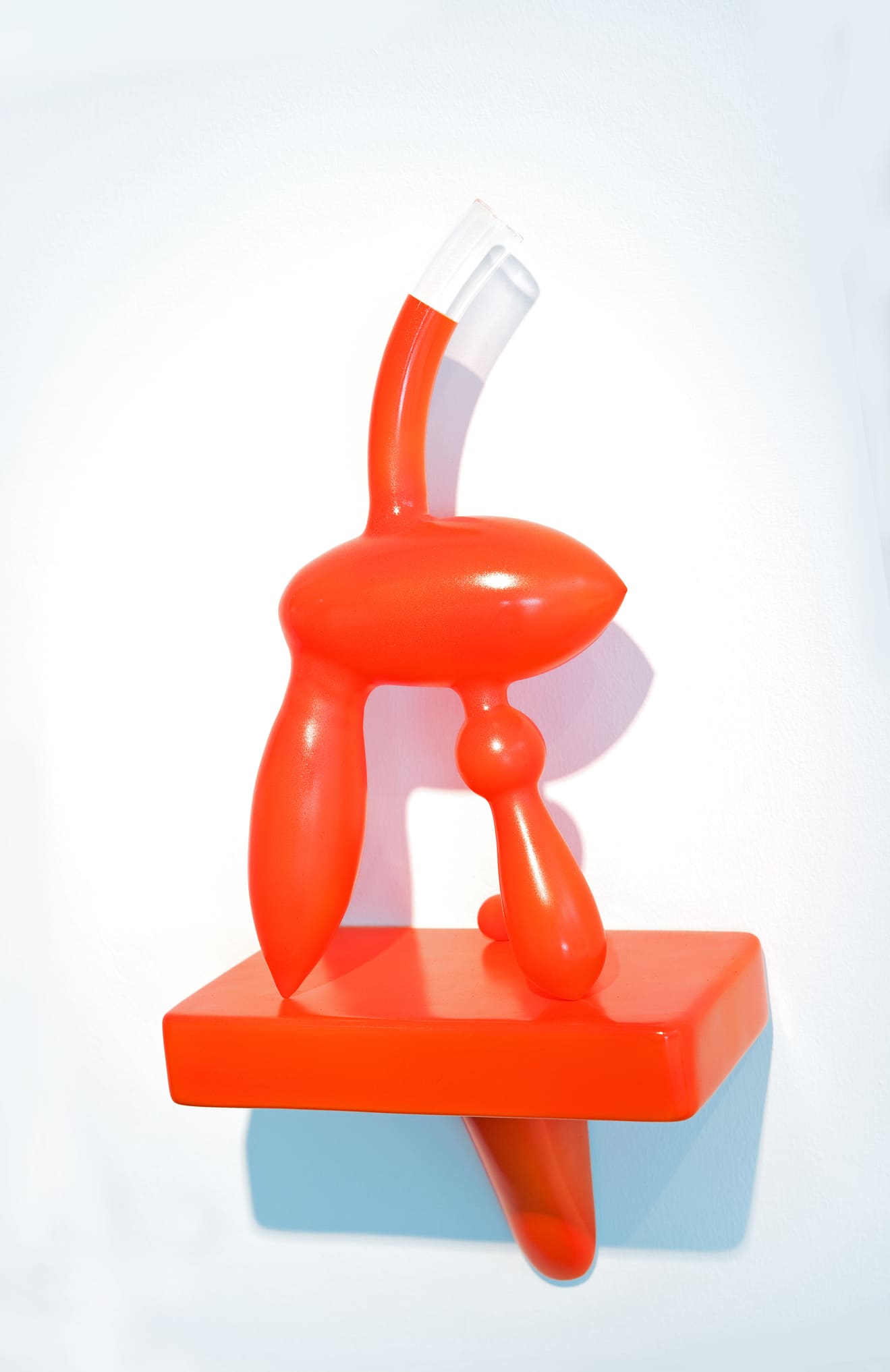 The artist characterizes his artistic practice as based on magic, surprise and feeling as opposed to being generated from theory or single concepts that can be captured in a few words. However, Meitner is by no means an enemy of words, often giving titles to his works that suggest an idea, an event, a historical personnage or a shape. Here he will be showing: Not a peep, a green work in glass and fiberglass, the title referencing the famous painting Ceci n’est pas une pipe by Magritte; or Wurst that could happen, a sculpture playing on the idea of a trumpet and the title on the resemblance between the words “wurst” and “worst”.